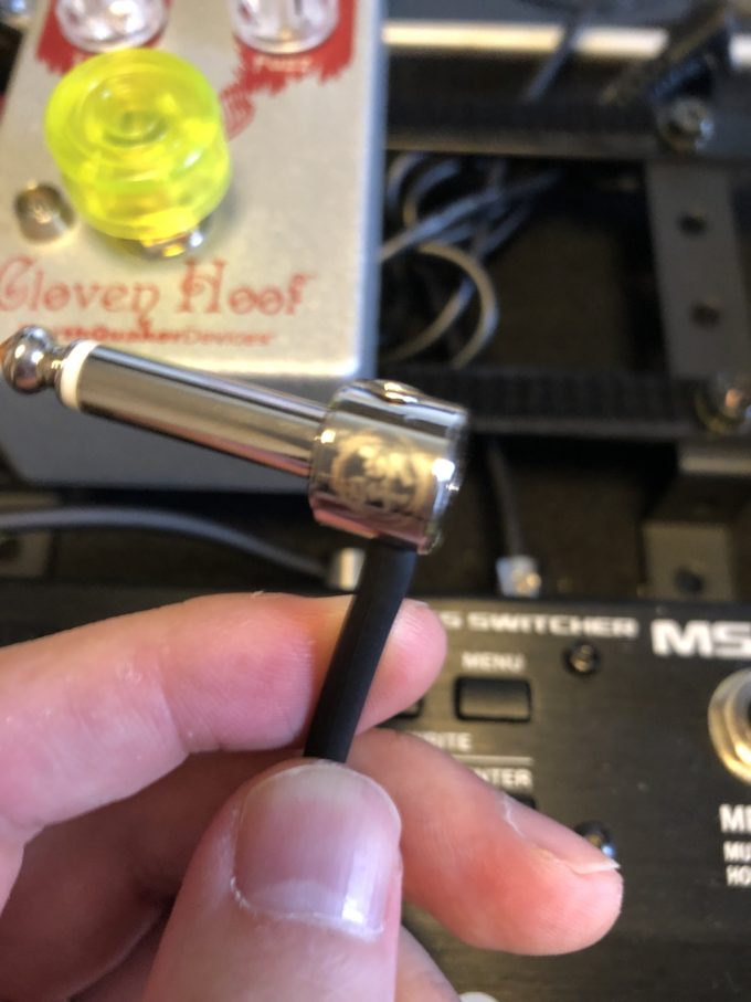 通常、ケーブルと端子は内部の接合部分をハンダで引っ付けて固定させ、その部分を隠すようにカバーされています。しかしそれではカバー部分が大きくて、エフェクター間につなぐパッチケーブルには少々邪魔な感じもします。