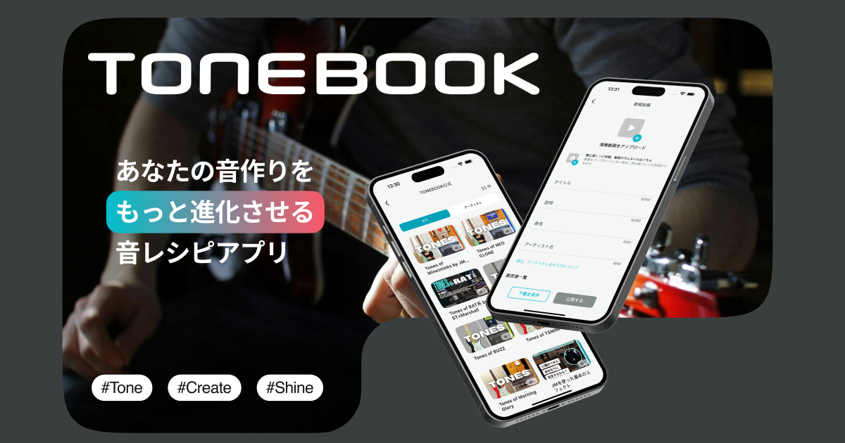 「TONEBOOK」は音作りを共有するスマホアプリ(iOS専用)で自身の、他の人の作ったセッティングを見せたり共有したりすることができるようです。