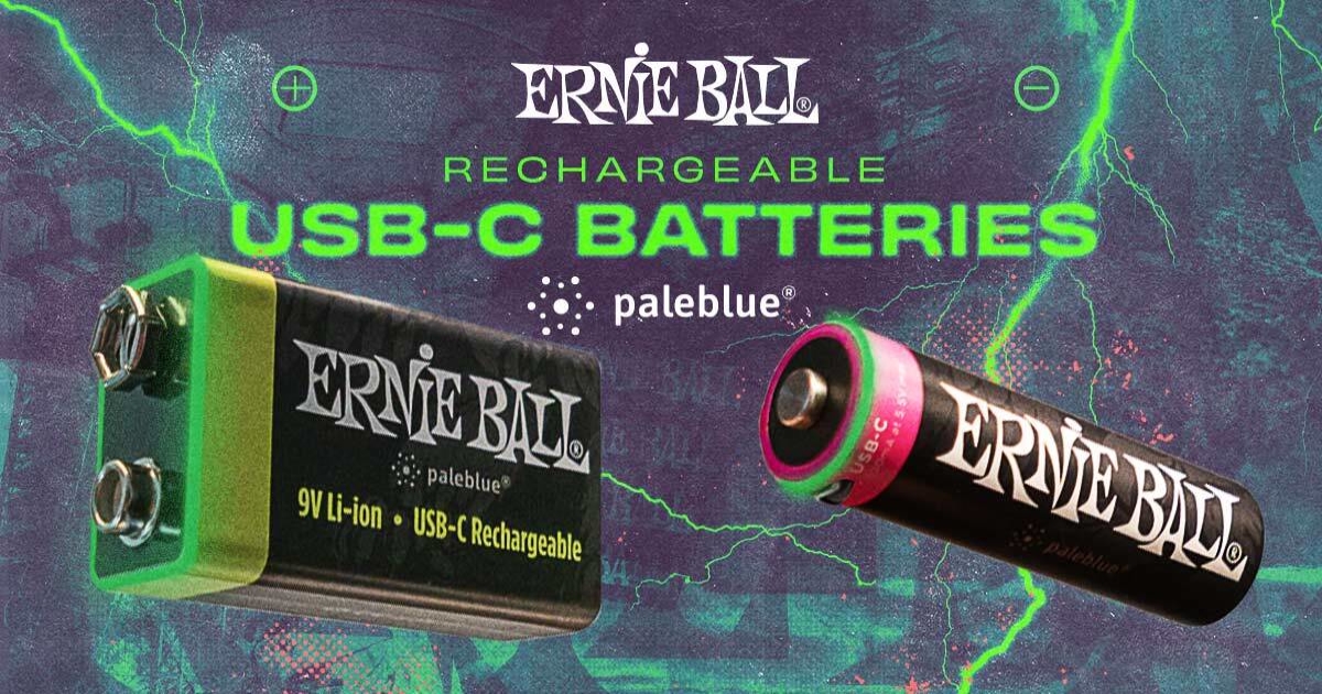 Ernie Ball USB-C rechargeable batteries by Paleblue are sustainable, h...